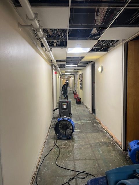 On December 26, 2023, NJCU experienced a catastrophic water loss event during winter break. A total of 27 separate pipe failures resulted in extensive flooding across three academic buildings, placing critical campus facilities at risk of prolonged closure. The scale and complexity of the loss exceeded the capacity of the initially engaged restoration contractor.